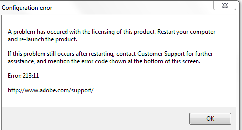 It was not the permissions issue stated at article linked above. As a first troubleshootiong step, . How to fix adobe photoshop failed to open ( configuration error 213:11 ). Study focus room education degrees,. I have adobe photoshop elements 9 and i have got an error 213:11 as a license error.